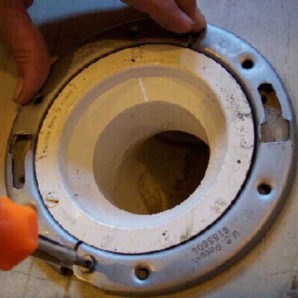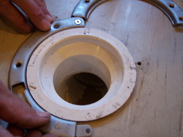 At this point, if your floor is in need of replacement, this would be a very good time to perform any necessary repairs after the Flange's Steel Ring has been removed, the plastic Flange Body itself does not need to be removed. The floor area that is needed to be replaced may have a hole just large enough to slip over the outside diameter of the Flange Body, that will be enough floor material to securely fasten THE CLAM. Replacement Ring to the new flooring.