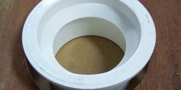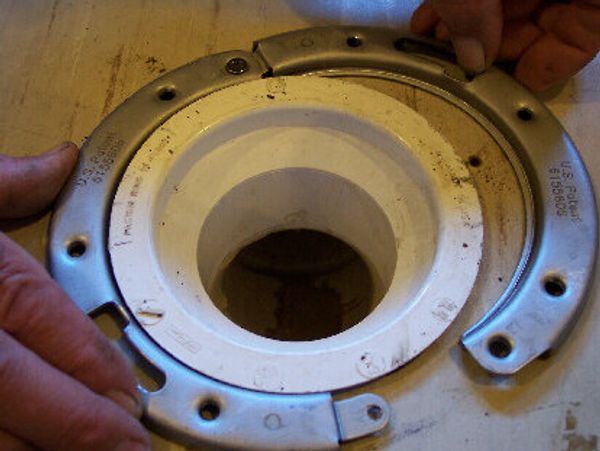 This picture shows THE CLAM with both halves fully around the Toilet Flange