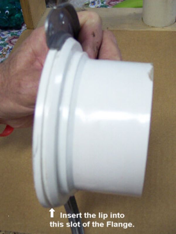 Insert the lip of one half of THE CLAM into the slot on the Flange as shown in the photo.